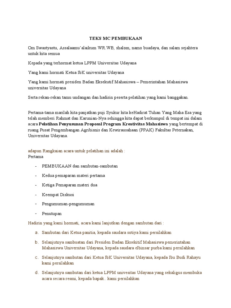 Demikianlah artikel yang penulis bagikan. Hanya akan jadi hebat jika diarahkan oleh mc yang hebat. Tentu ada susunan naskah mc yang akan membimbing jalannya acara tersebut, supaya dapat berjalan dengan semestinya. Perkenalkan, saya rinda dan rekan saya nafis, akan membawakan acara yang bahagia ini hingga larut malam nanti. Contoh susunan naskah mc pada acara khitanan. Biar fokus dengan acara formal dan acara hiburan. Pada artikel yang anda baca kali ini dengan judul kumpulan teks mc acara musik dangdut terbaik, kami telah mempersiapkan artikel dan contoh contontoh diartikel ini dengan baik untuk anda baca dan ambil informasi didalamnya. Contoh mc acara hiburan dangdut new pallapa cute766. Maka di blog ini saya berikan contoh teks. Jan 29, 2021 · hiburan penutup. Contoh teks mc from scribd.com Agar suatu acara dapat berjalan dengan baik, tertib dan teratur. Harapan penulis semoga artikel yang membahas berbagai contoh teks mc singkat ini dapat menjadi referensi sobat dalam menyusun teks mc sesuai dengan tema.
